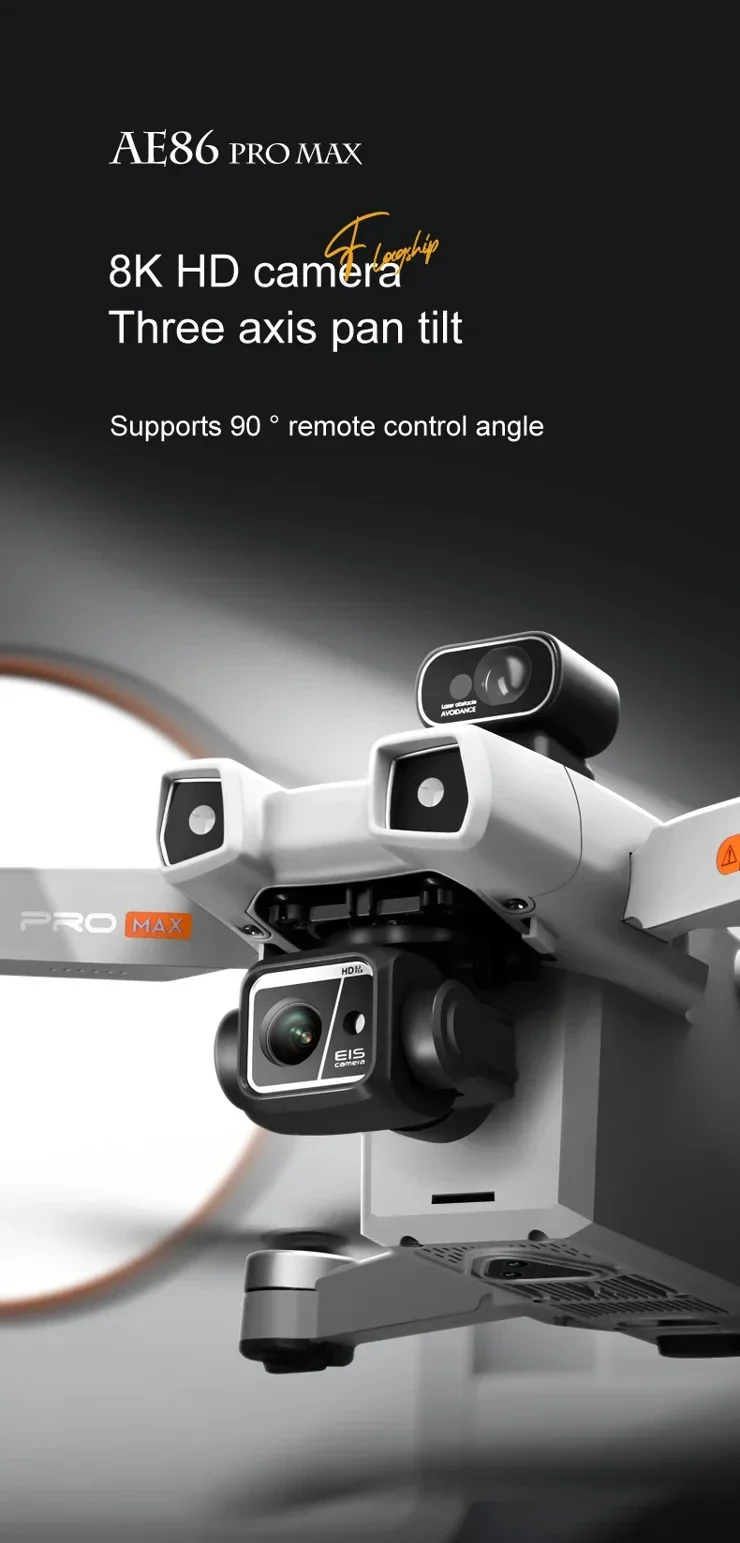 AE86 Pro Max 3-axis Gimbal Obstacle Avoidance GPS RC Drone Single Lens 4K 5G Digital Image Transmission Aircraft, Single Battery - Grey